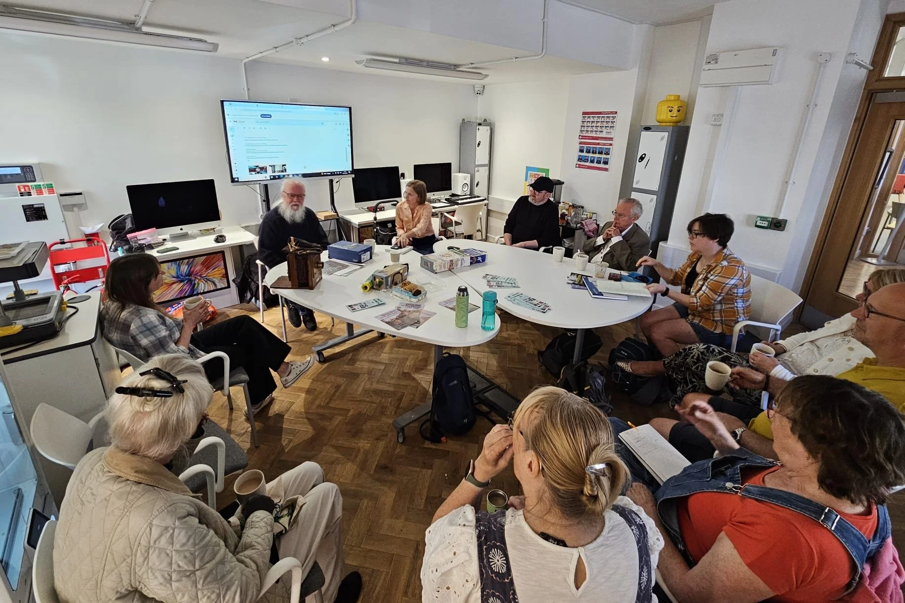 Fe wnes i gwrdd â Sylwia yn nigwyddiad Boreau Creadigol Caerdydd yn 2016. Wyth mlynedd yn ddiweddarach, mae ein cyfeillgarwch wedi tyfu’n rhywbeth arbennig: grŵp bychan o ymarferwyr celf sydd wedi’u hysbrydoli gan y sgyrsiau creadigol cynnar hynny.